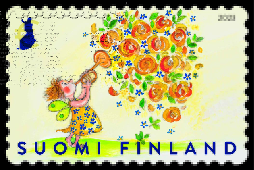 Våren är en tid för gratulationer. Frimärken med älvor, designade av den älskade postkortskonstnären Virpi Pekkala, lämpar sig bra för alla hälsningar och festinbjudningar. ”Älvorna fungerar som ceremonimästare för gratulationer och fester på vårfrimärkena och spelar en fanfar för våren,” berättar Pekkala.