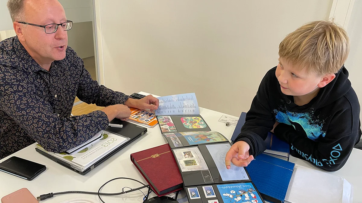 "Ett frimärke är som en färdbiljett för ett brev eller ett kort. I dag är det ganska få ungdomar som har frimärkssamlande som en hobby. Det är fint att du fortsätter med hobbyn", säger Tommi.