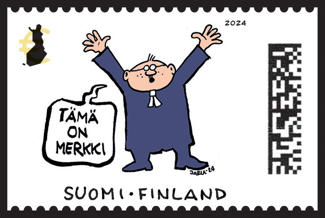 "Där kom jag underfund med hurdana ordlekar som skulle kunna fungera på ett frimärke. Frimärken har ju oftast ingen text, så de här är annorlunda på det sättet. Religiösa teman är i allmänhet populära, och numera kommer det inte heller några klagomål från troende", säger Jarla.