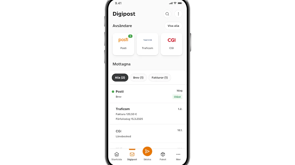 Digipost och paket syns nu sida vid sida direkt på startsidan. Du ser med en blick om du har fått nya brev, fakturor eller om ett paket är på väg.